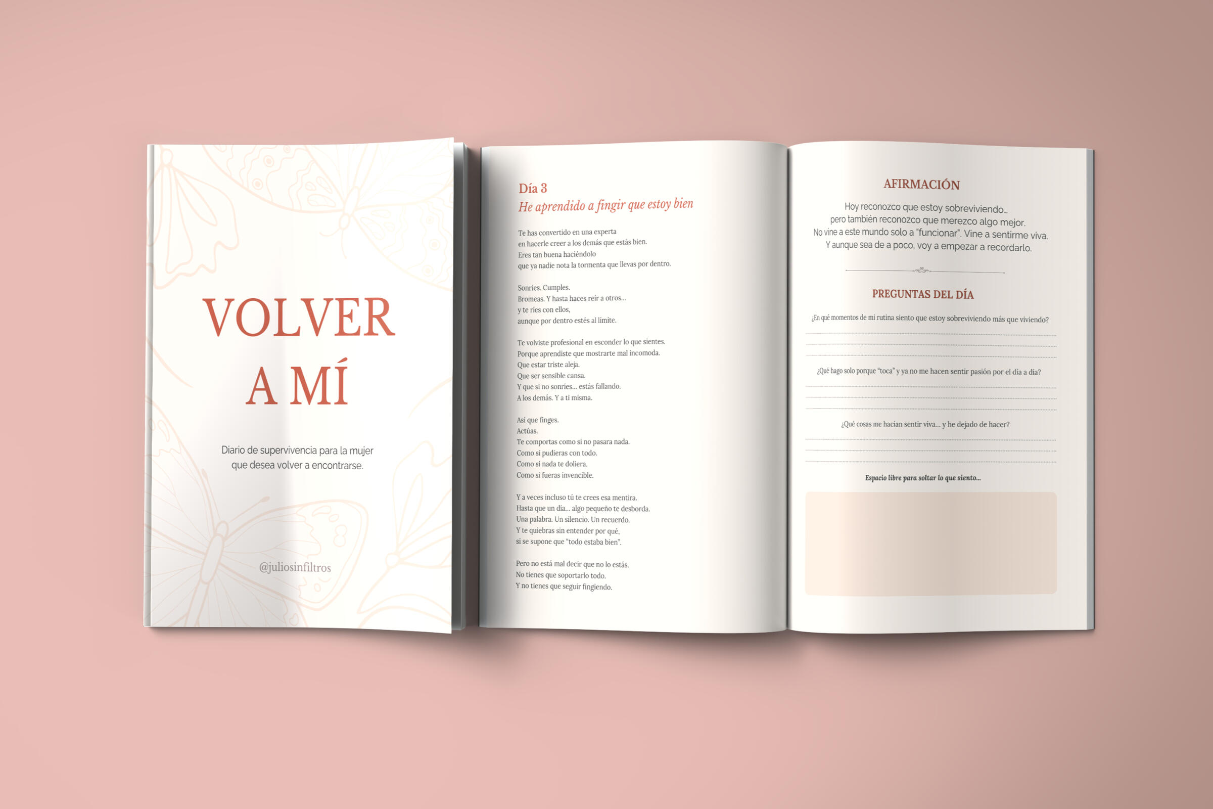 "Volver a mí" es un diario emocional de 30 días diseñado para ayudarte a reconectar contigo misma a través de la escritura guiada. Este diario no es solo una herramienta de autoconocimiento, sino un espacio práctico y profundo de crecimiento personal, enfocado en el bienestar emocional y la transformación.Cada día te invita a reflexionar sobre tu vida, tus emociones y tus deseos más profundos, con entradas que te ayudan a tomar conciencia de lo que necesitas sanar, lo que deseas recuperar y el futuro que sueñas construir. Con 110 páginas llenas de preguntas poderosas, afirmaciones diarias y ejercicios prácticos, este diario será tu guía para reconectar con tu verdadera esencia.
